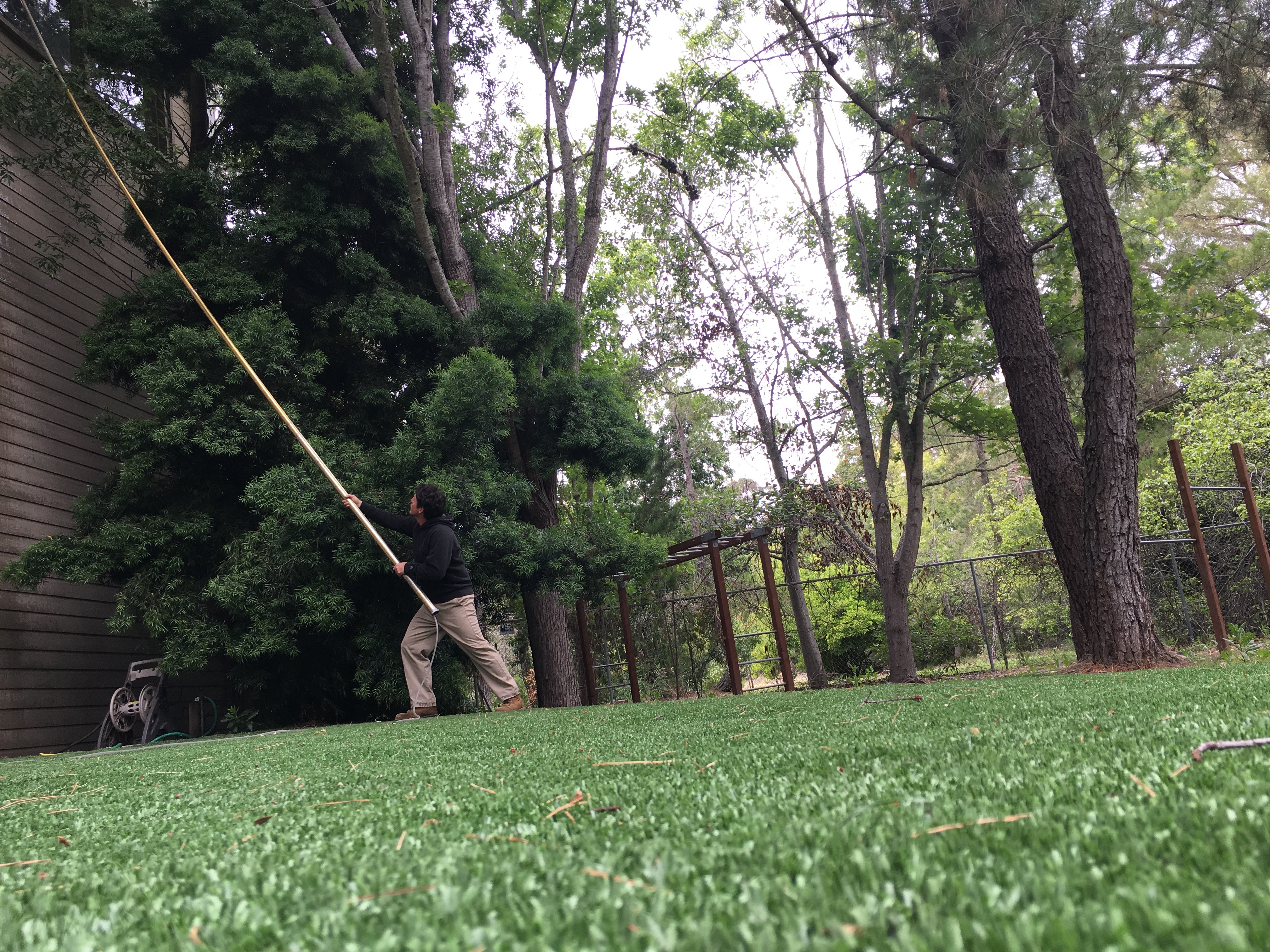 We used to wash the CRUX Climbing Gym in San Luis Obispo, anyone remember it? It was notorious for a few reasons, the main one for us was the very difficult windows to wash, some at least 25 ft up hidden behind trees, this is why window cleaners must stay in shape!