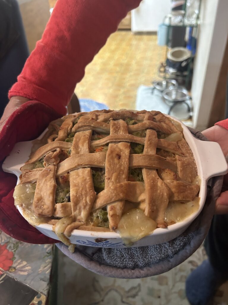After a long day washing glass at homes all across the San luis Obispo County we get to sit down to home-cooked goodness, this is life with a french-girl. If you have had homemade chicken-pot-pie you will know the difference, I feel sorry for people who do not have a mad-scientist in the kitchen to