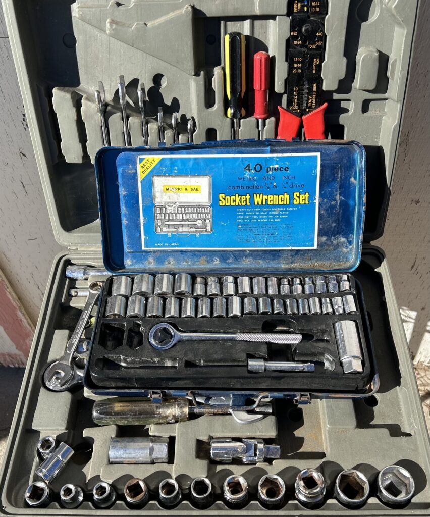 We could literally start a discount store with all the stuff we get as window cleaners, people downsizing has filled my shed with countless amazing tools and toys. Here are some of the free things we have aquired. Two almost-full tool kits, everyone needs this in the trunk or under the seat. A box packed