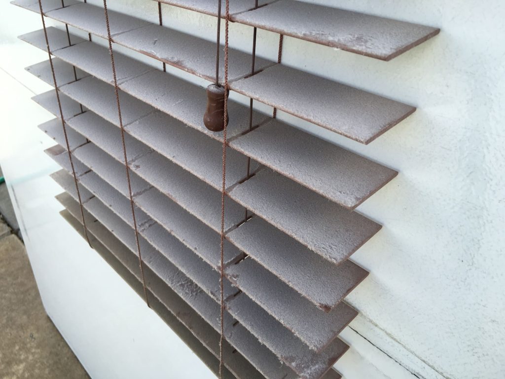 Or more specifically why to clean mini-blinds. A picture tells a thousand words, sometimes there is no avoiding it, times up! This blind looks like it should be in a Christmas display with fake snow on it, a lot of fun to watch this wash off!