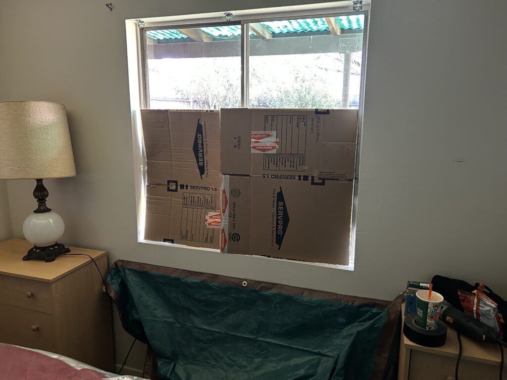 Her main front window was removed along with the shutters