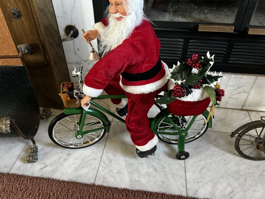 Little bicycle toys all over the place, this is the generation that had joy in thier hearts and a flare for the magical mystery of the holidays and craftsmanship.